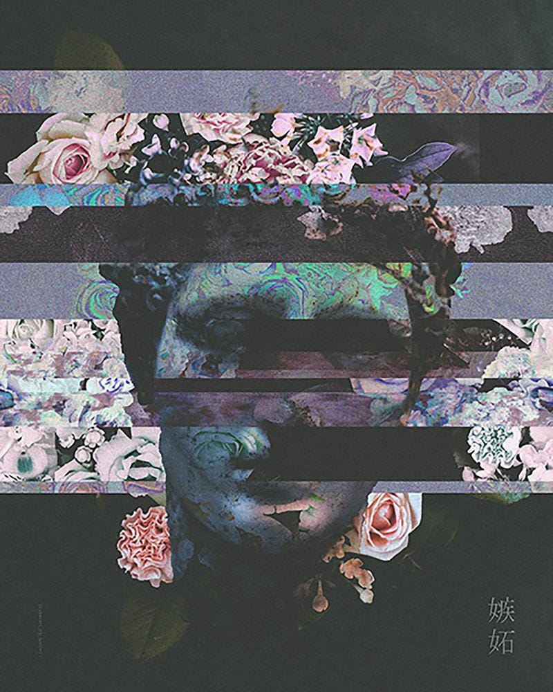 I use glitch as a medium to explore what it means to be human. My earlier work mostly focussed on using glitch to distort and corrupt cultural semiotics, as to shine a light on the ridiculousness of social constructs. My later works seek to explore human emotions and imperfections as seen through the lens of a failing machine.”