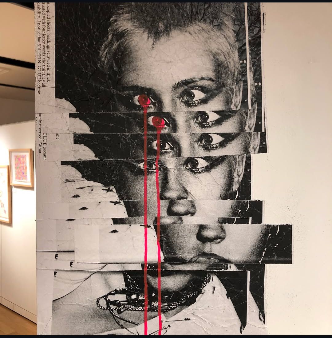 I also really like this mixed media collage which I think also has a lot of glitch influence in its repeated forms, like a Windows error message stacking on top of itself.